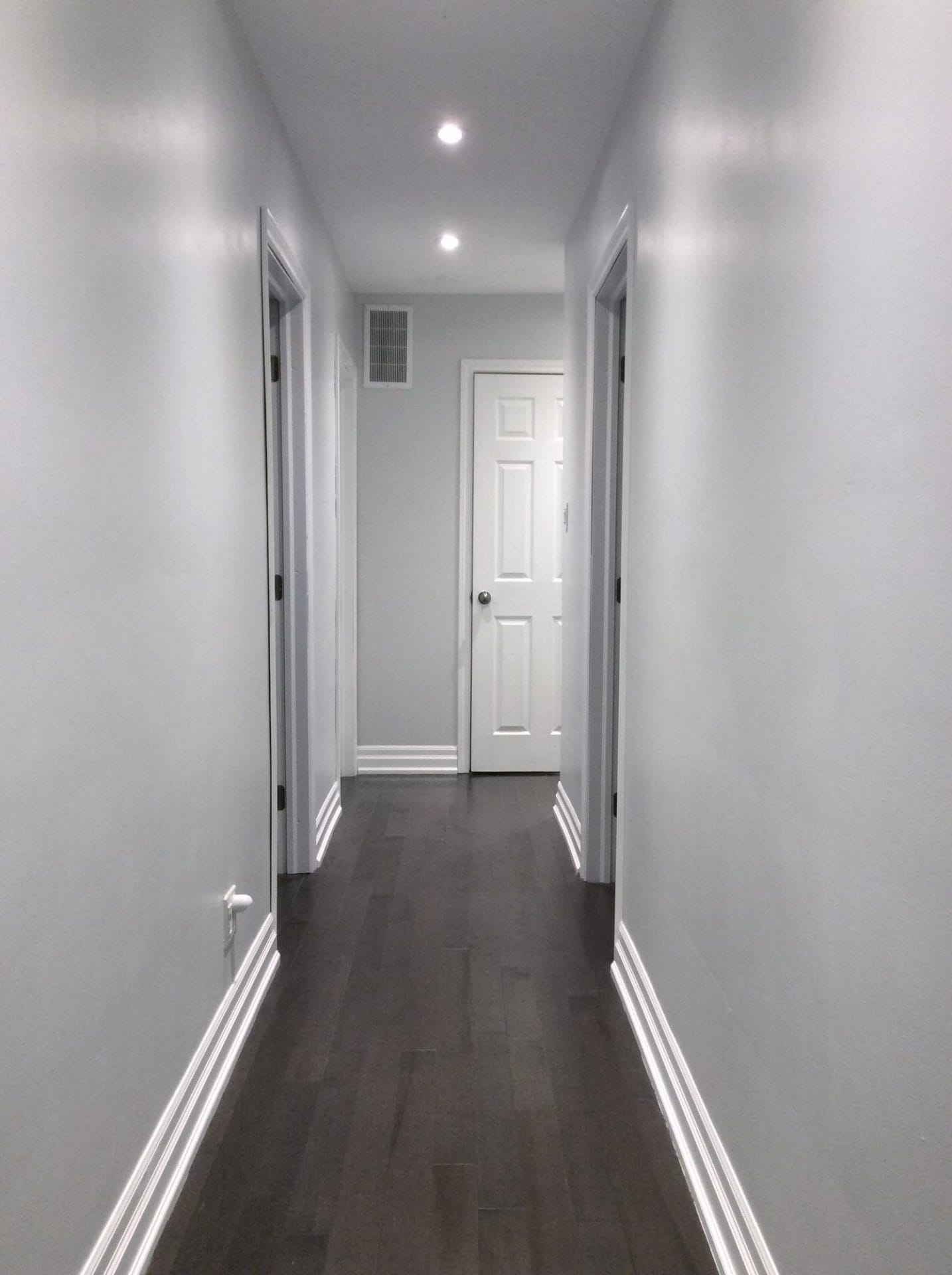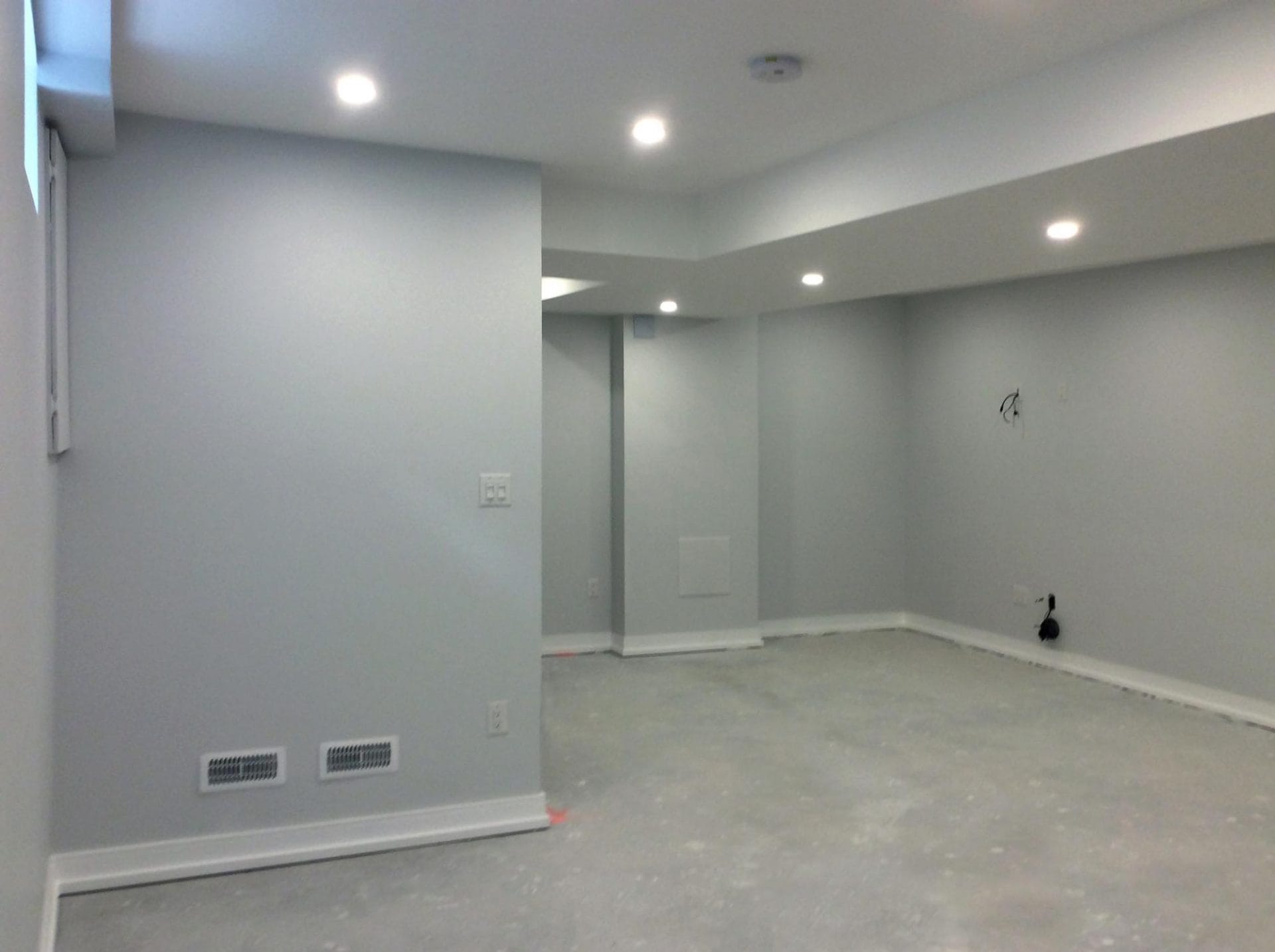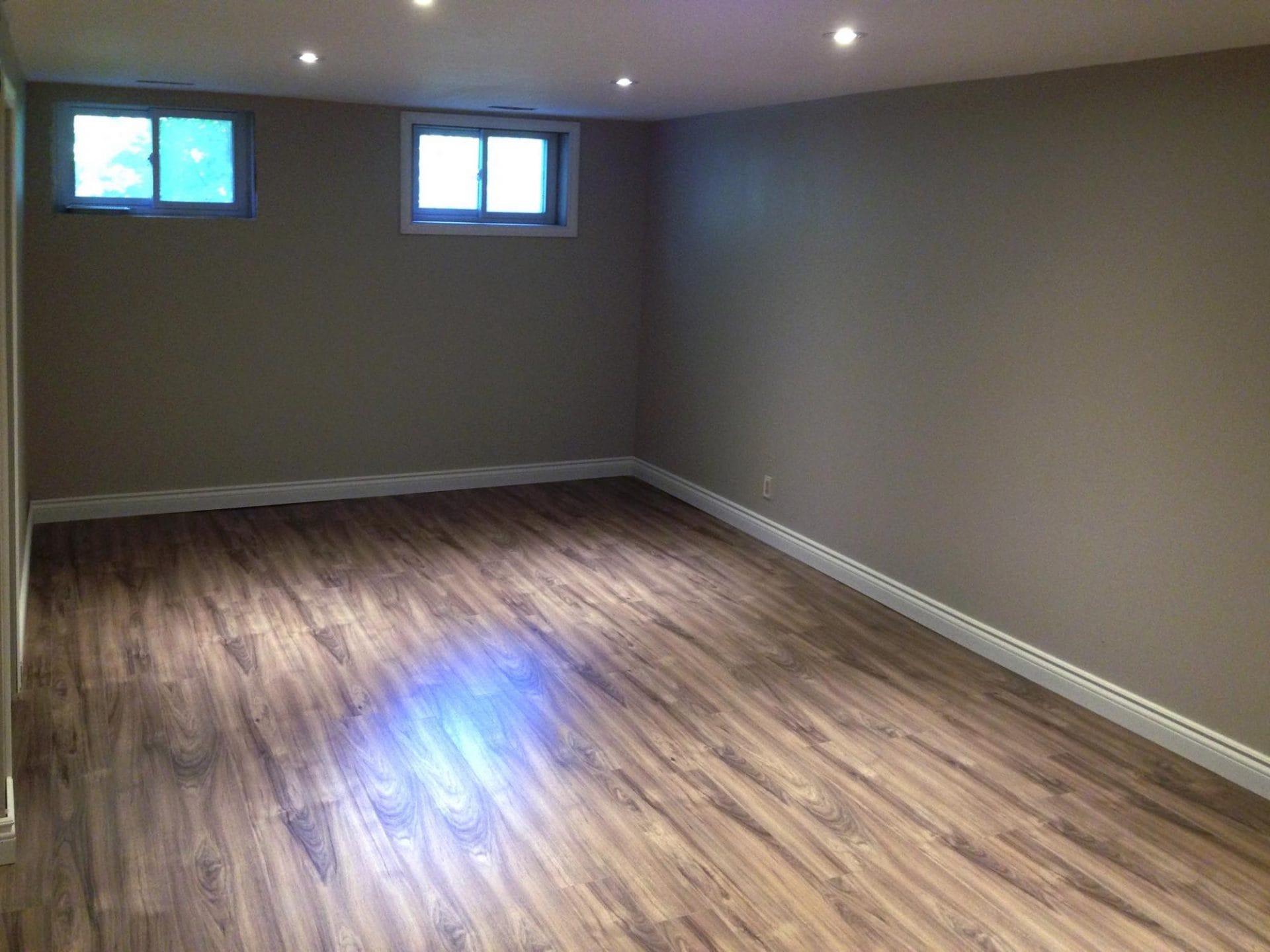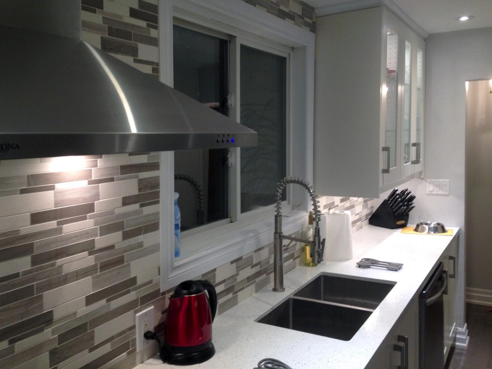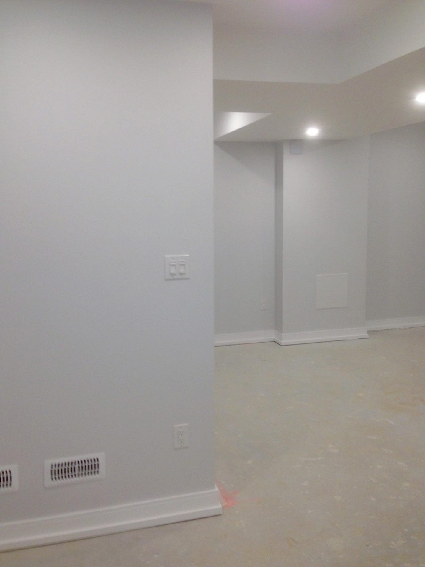 Brand new basement bathroom build, new plumbing, recessed lighting, wall mounted vanity, new glass shower enclosure, adjustable shower handle control arm, dual flush toilet, ceramic white penny tile, porcelain Carrera Marble wall tile, and hardware