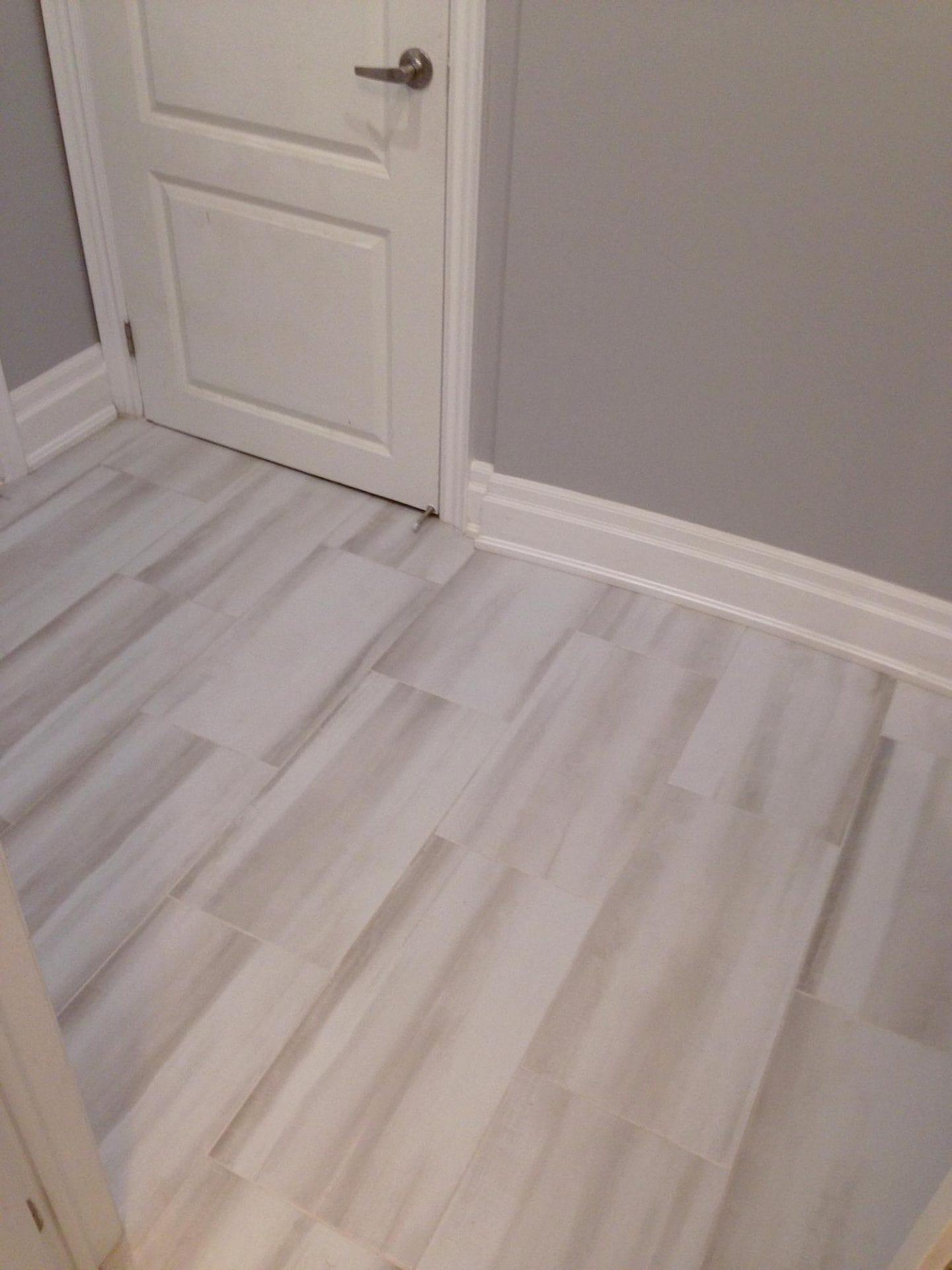 Full bedroom to master bath conversion , new drainage/venting and water supply lines, 24″ x 24″ porcelain Carrera marble tile, Bright white flat white porcelain wall tile with pebble stone accent strip, new dual flush toilet, solid wood 60″ double vanity with quarz countertop and single arm faucets, 60″ soaker tub and hardware